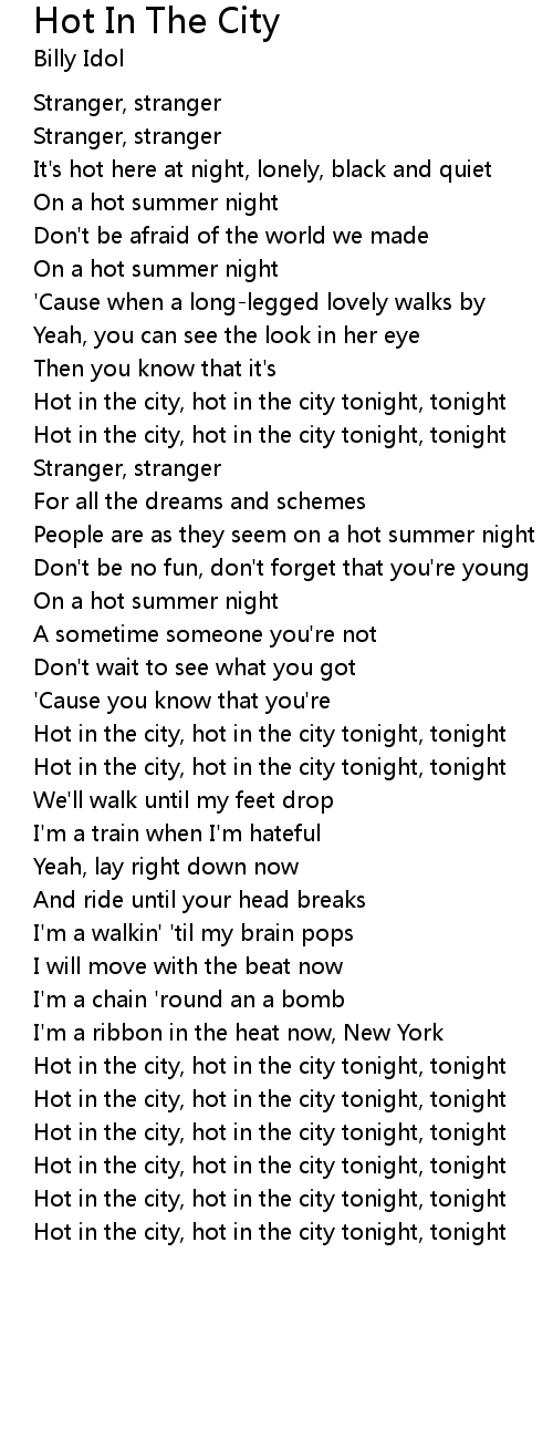 Hot in the city, hot in the city tonight, tonight |