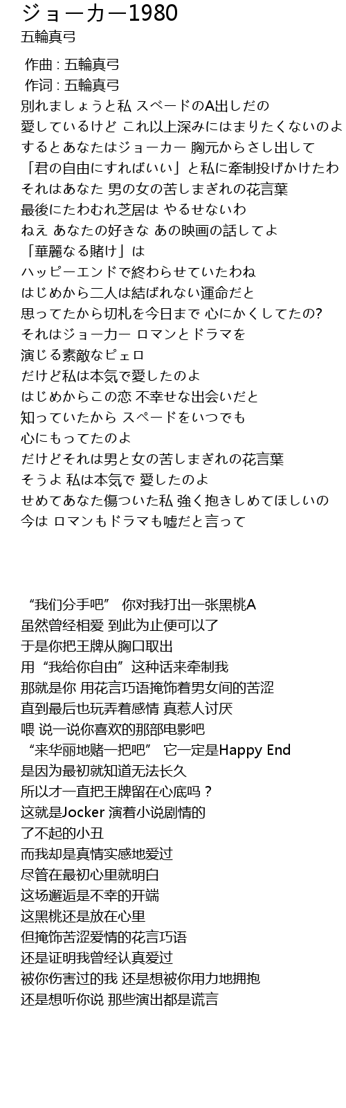 | [00:14.55] | 別れましょうと私 スべードのA出しだの |