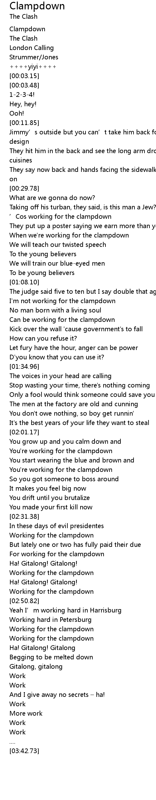 | [00:52.83] | When we' re working for the clampdown |