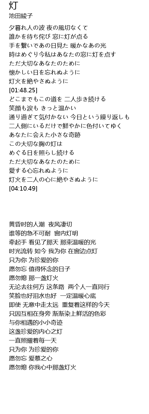 | [03:47.79] | 灯火を二人の心に絶やさぬように |