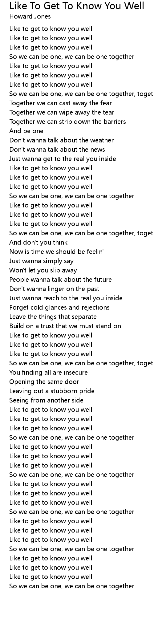 Like to get to know you well |