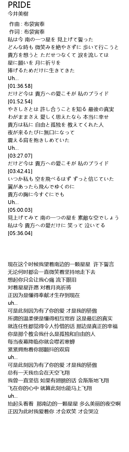 | [01:37.72] | だけど今は 貴方への愛こそが 私のプライド |