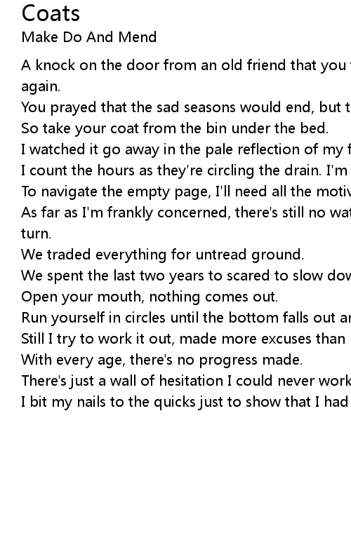 Still I try to work it out, made more excuses than my fingertips could count. |