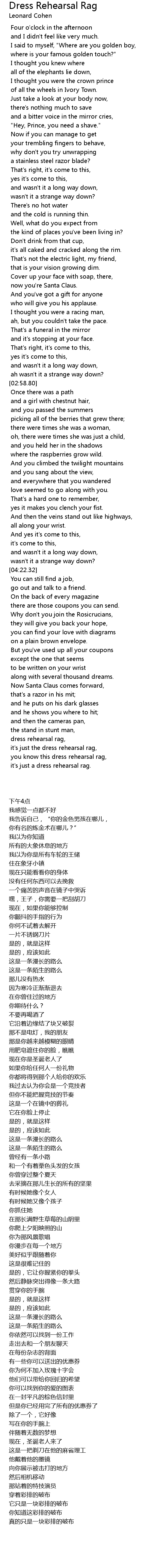 dress rehearsal rag, |