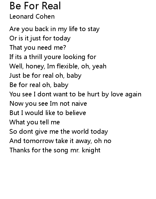 Just be for real oh, baby |