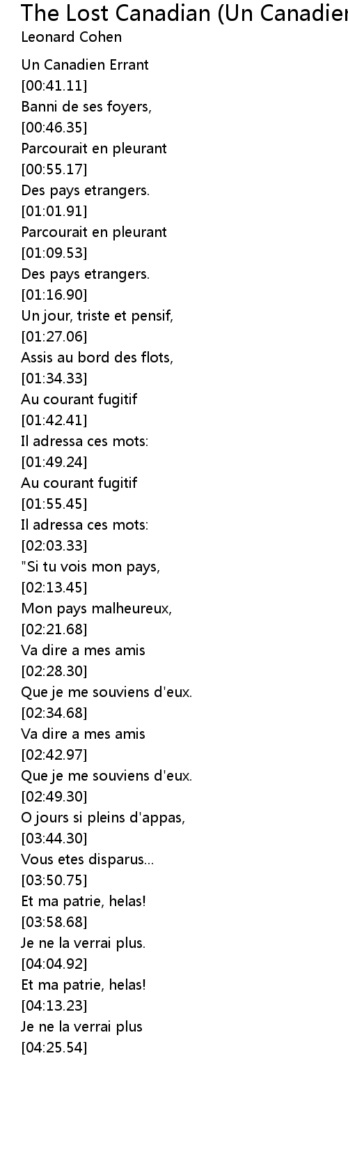 The Lost Canadian (Un Canadien Errant) Lyrics