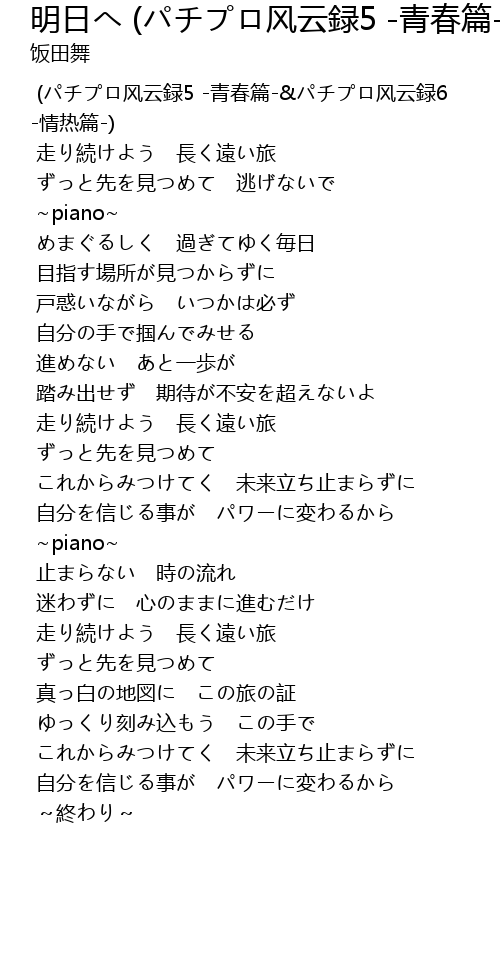 | [00:00.79] | (パチプロ风云録5 -青春篇-&パチプロ风云録6 -情热篇-) |