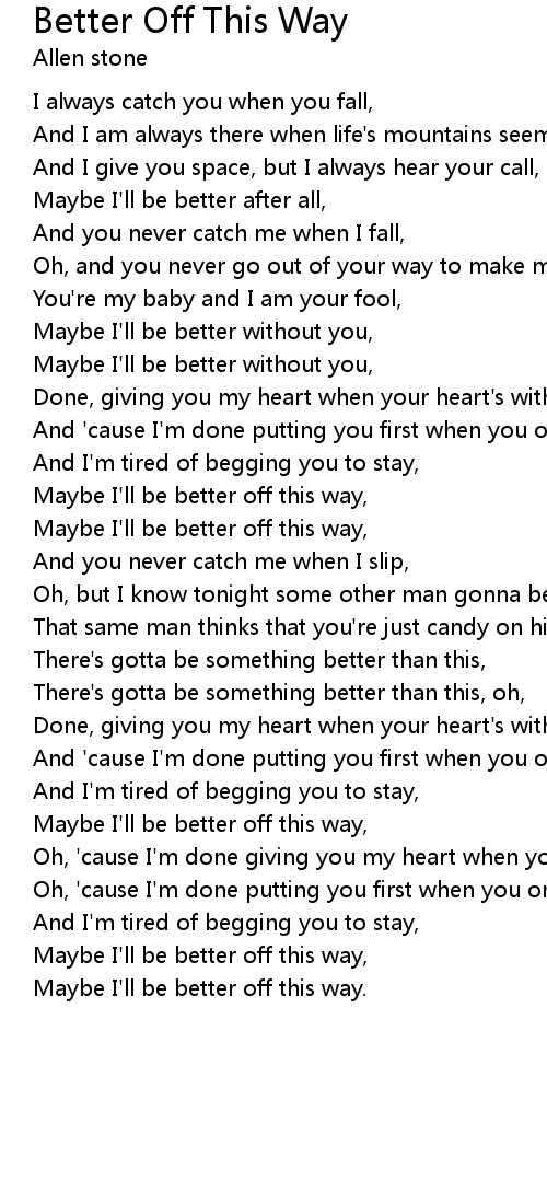 Maybe I'll be better off this way, |