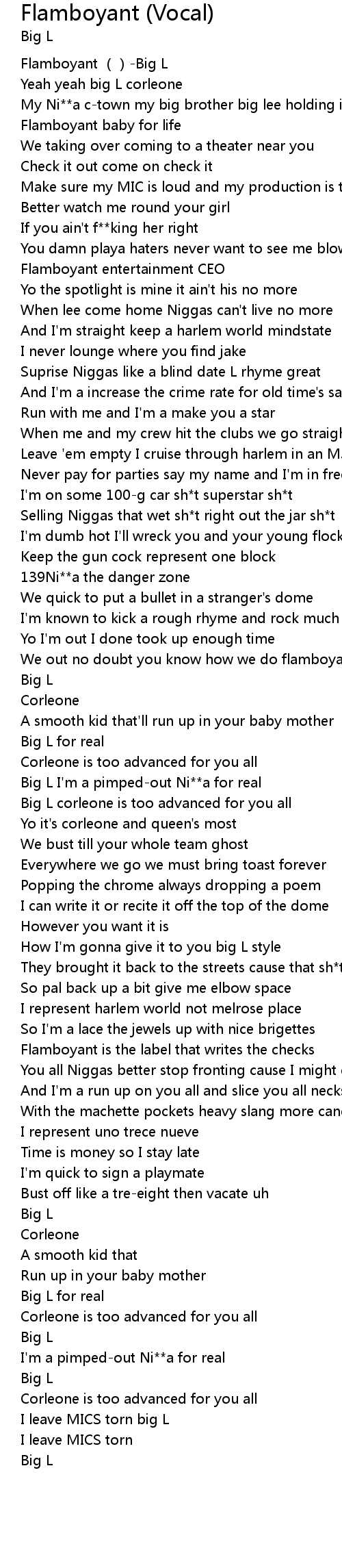| [01:32.436] | Big L I'm a pimped-out Ni**a for real |
