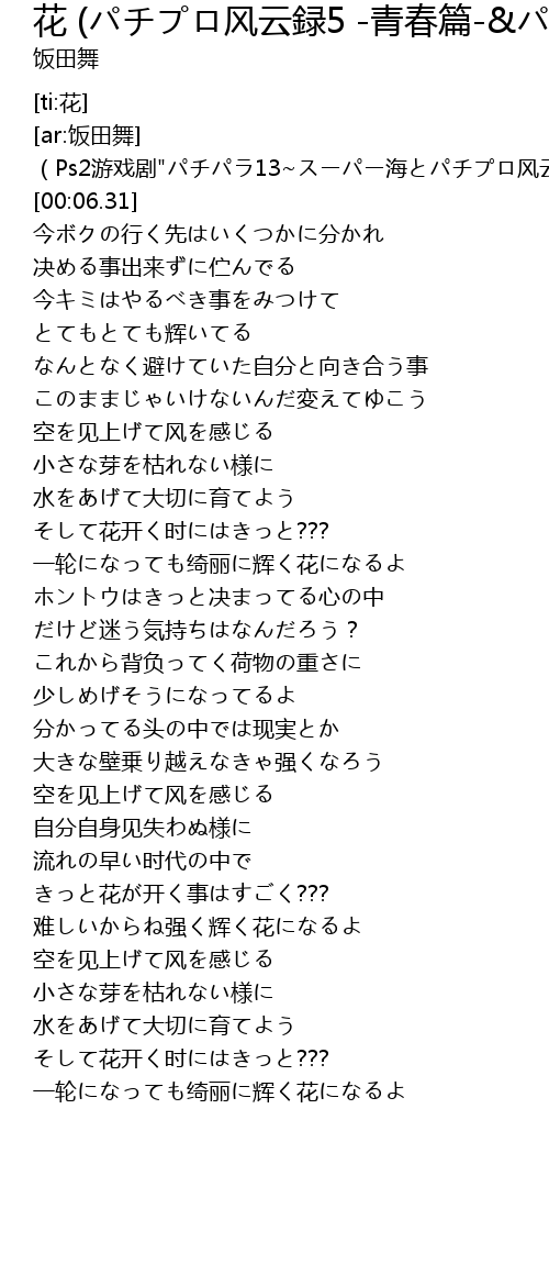 | [00:00.51] | (Ps2游戏剧"パチパラ13~スーパー海とパチプロ风云录~"主题曲) |