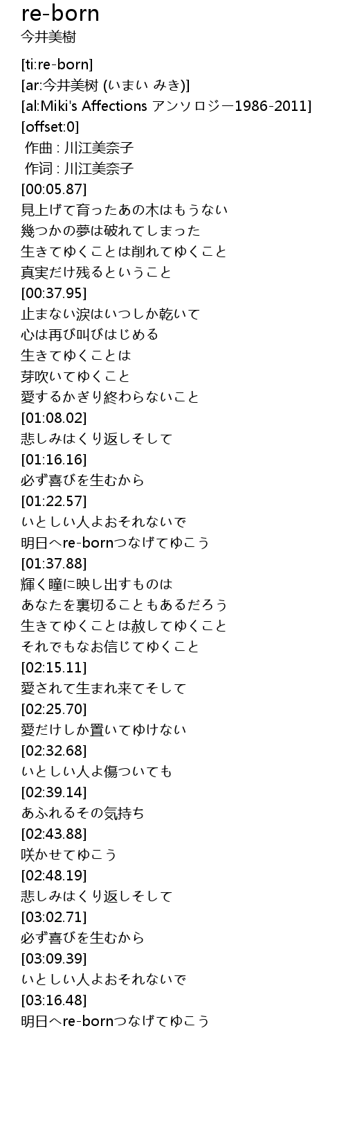 | [03:18.70] | 明日へre-bornつなげてゆこう |