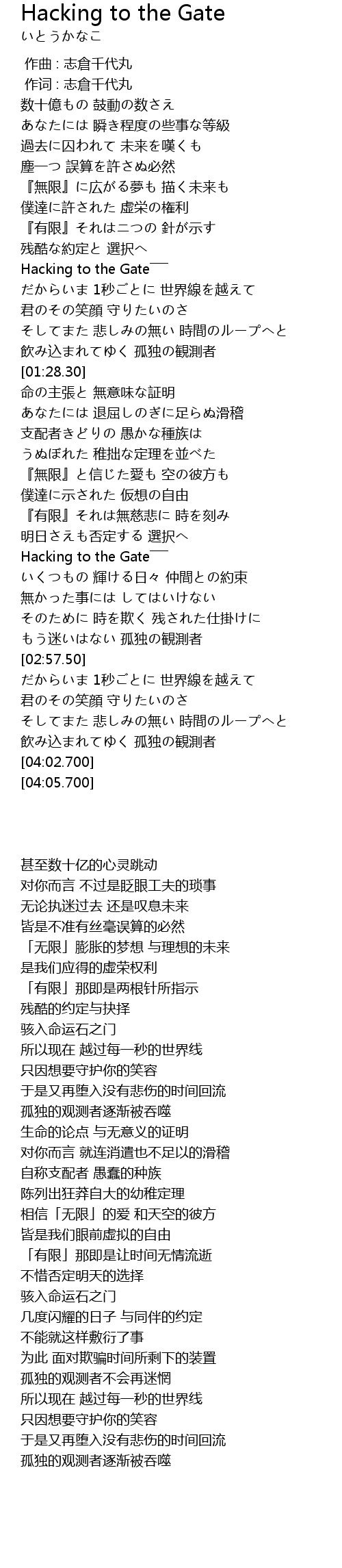 | [02:29.640] | Hacking to the Gate――― |