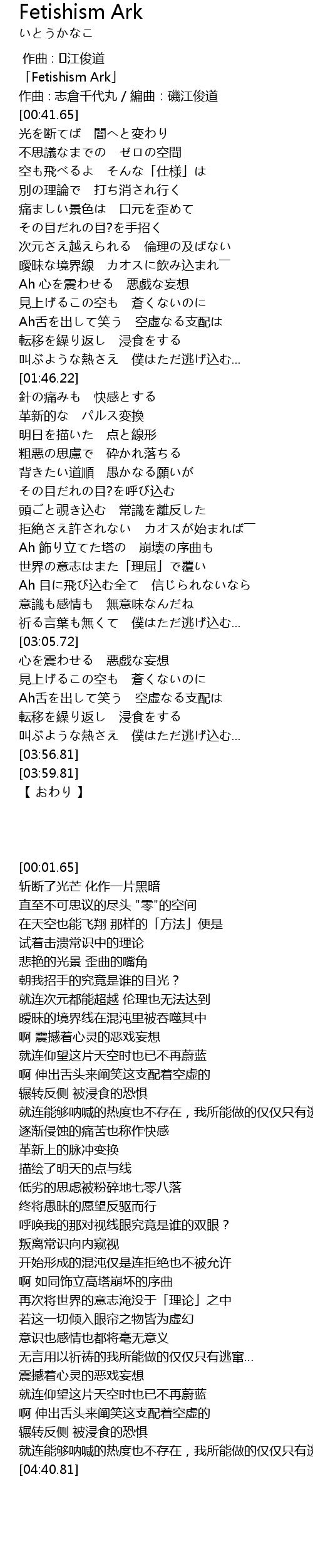 | [00:01.65] | 「Fetishism Ark」 |