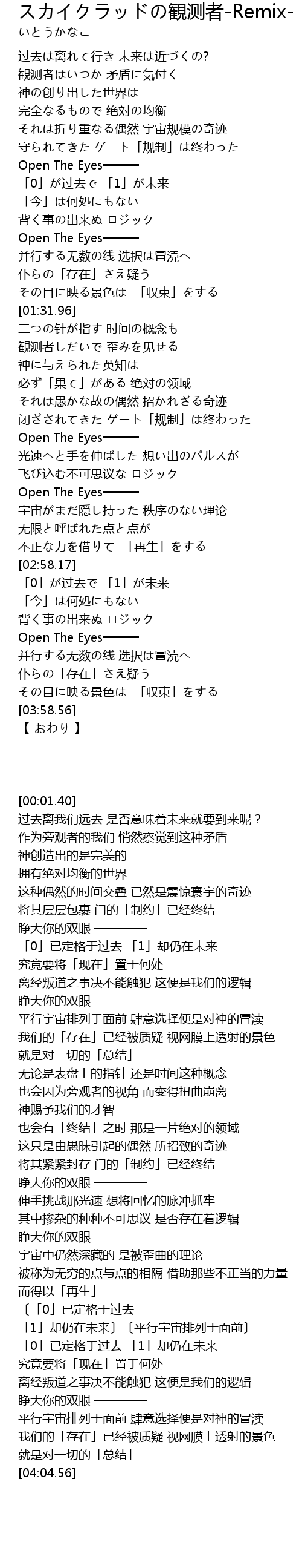 | [00:32.76] | 観测者はいつか 矛盾に気付く |