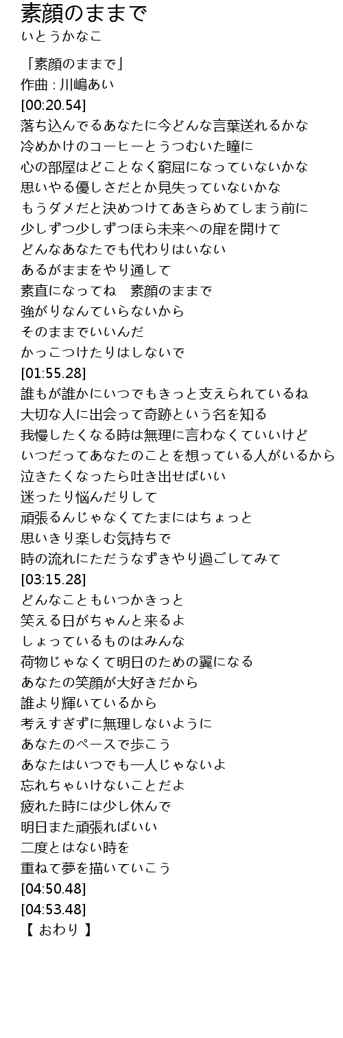 | [04:18.26] | あなたはいつでも一人じゃないよ |