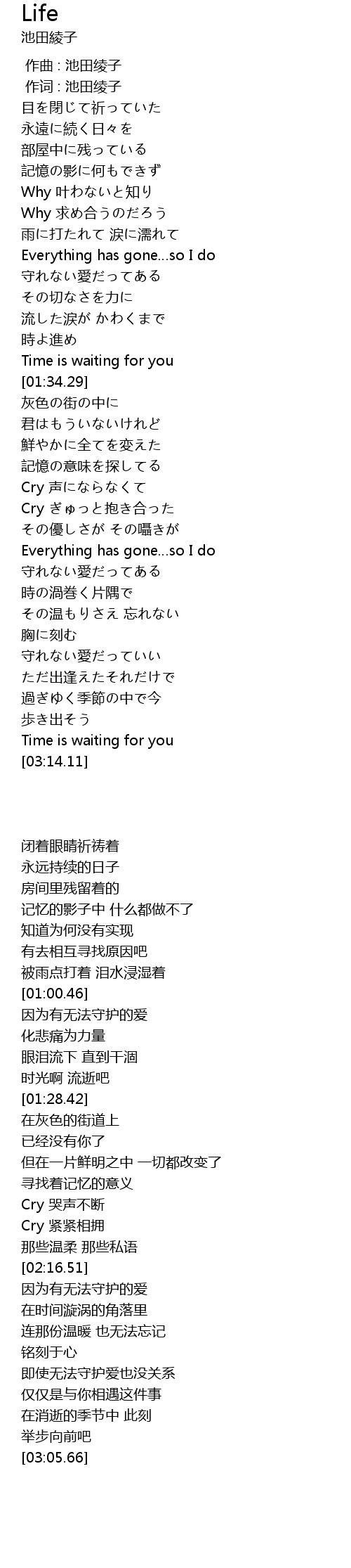 | [00:01.00] | 作词 : 池田绫子 |