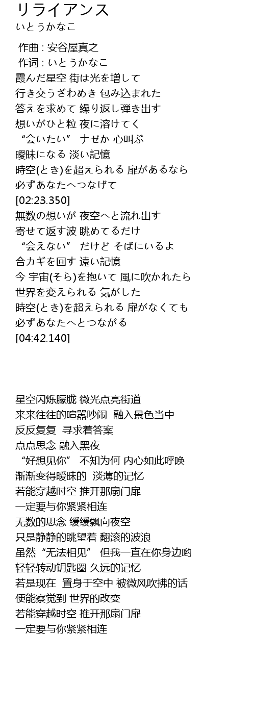 | [04:20.480] | 時空(とき)を超えられる 扉がなくても |
