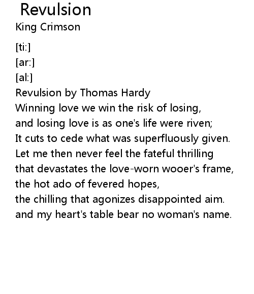| [00:02.87] | Revulsion by Thomas Hardy |
