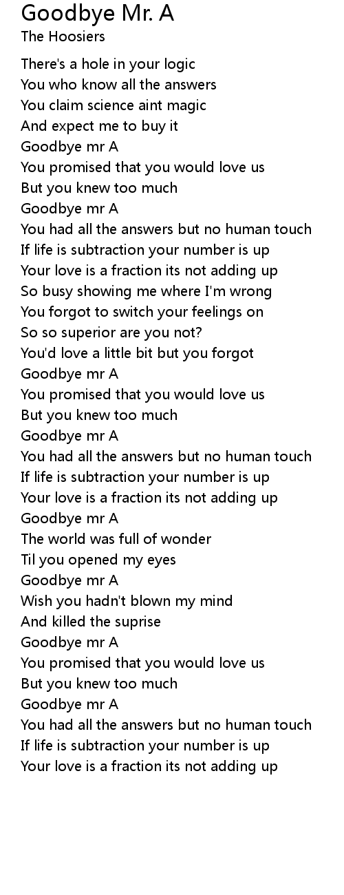 Goodbye mr A |