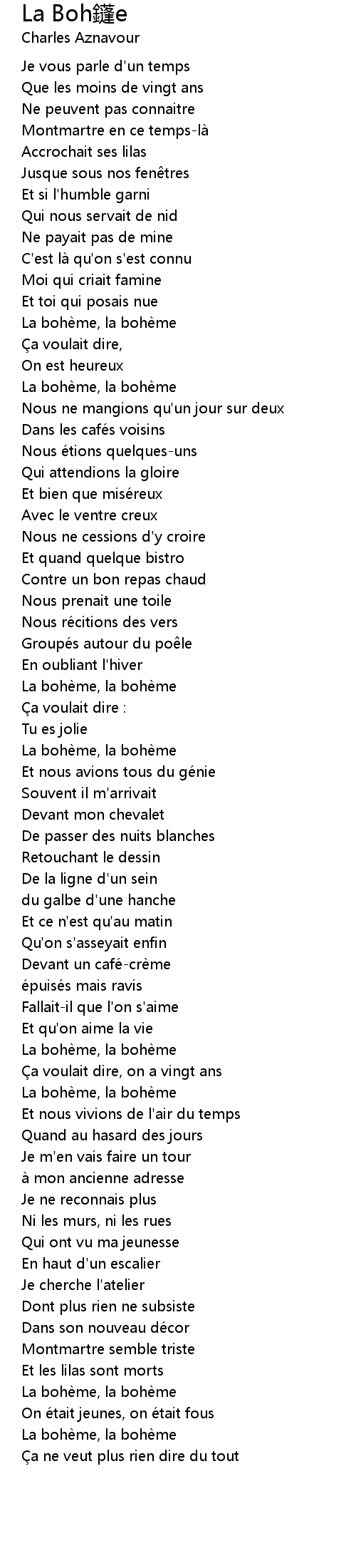 | [03:14.14] | La bohème, la bohème |