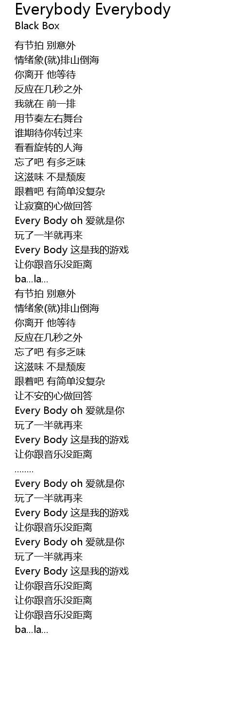 | [03:38.81] | Every Body oh ài jiù shì nǐ |