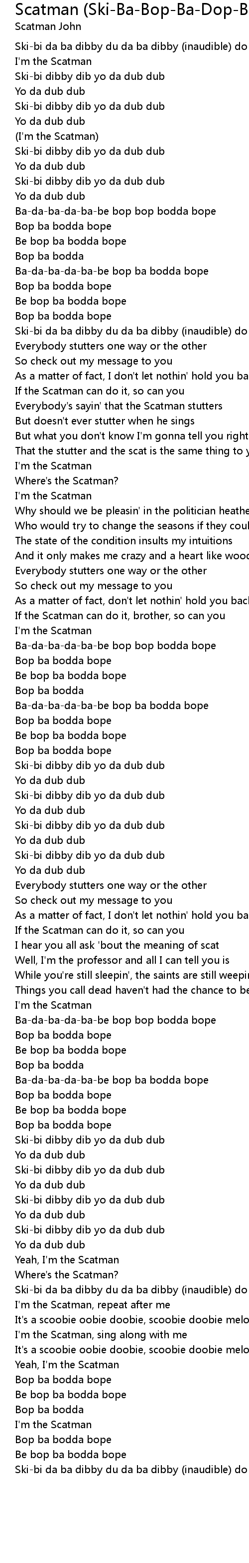 Scatman (Ski-Ba-Bop-Ba-Dop-Bop) Lyrics