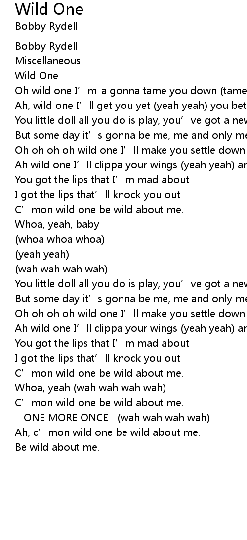 | Ah, wild one I’ll get you yet (yeah yeah) you bet (yeah yeah) | |