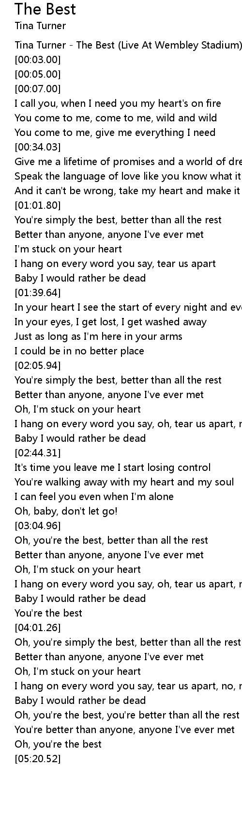 Tina Turner - The Best (Live At Wembley Stadium) |