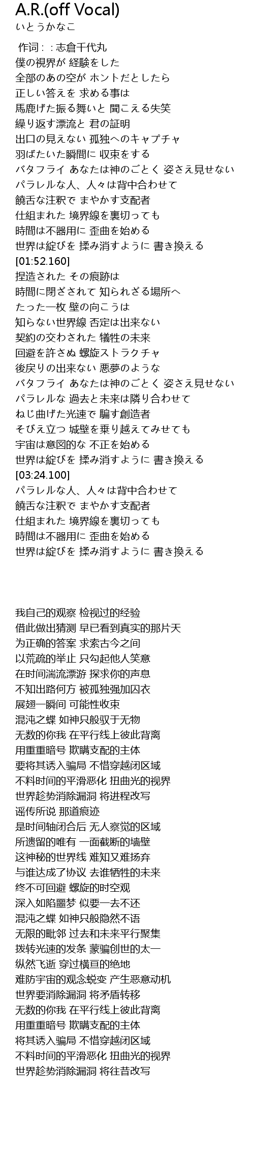 | [02:19.500] | 知らない世界線 否定は出来ない |