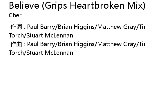 | [00:00.000] | zuò cí : Paul Barry Brian Higgins Matthew Gray Timothy Powell Steven Torch Stuart McLennan |