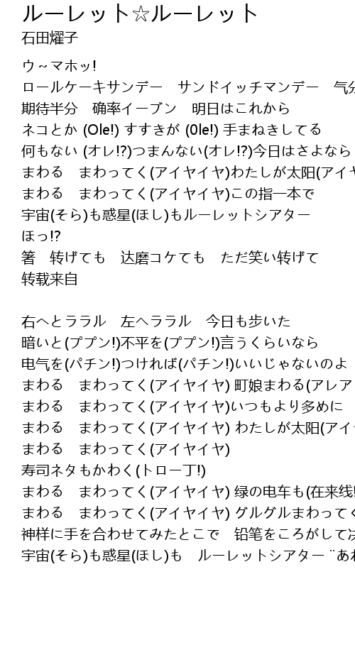 | まわる まわってく(アイヤイヤ)わたしが太阳(アイヤイヤ) | |