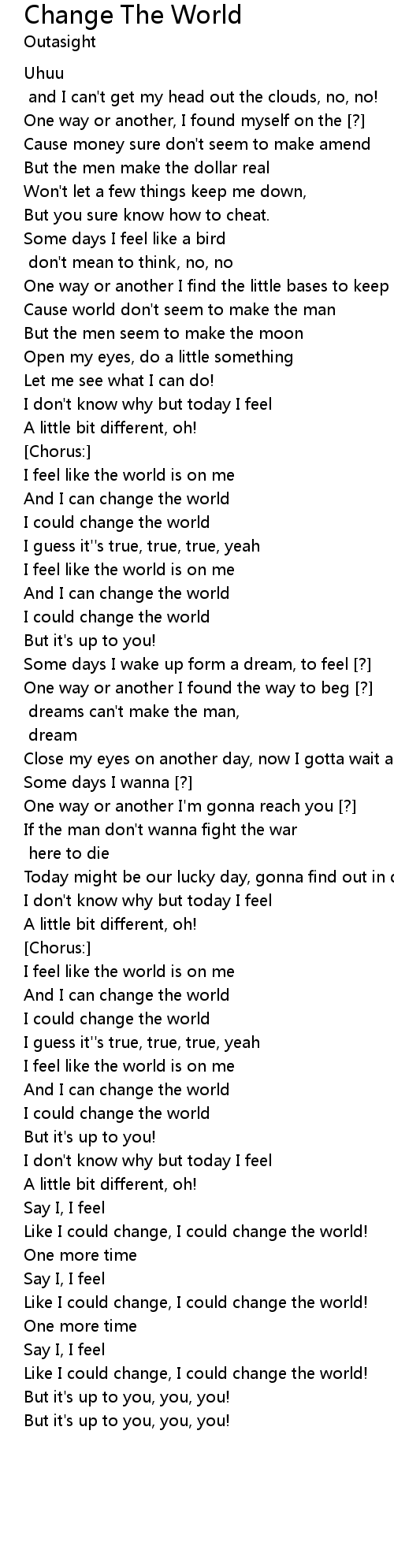 Like I could change, I could change the world! |