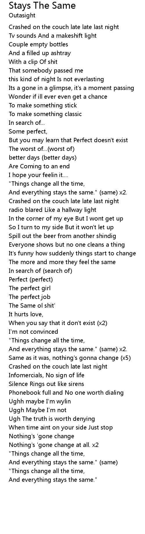 And everything stays the same." (same) x2. |