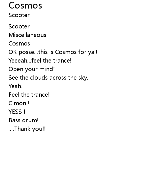 | Song | Cosmos |