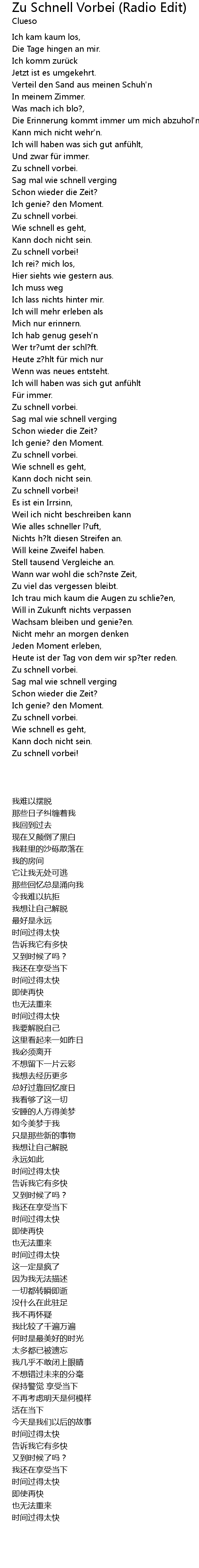 | Song | Zu Schnell Vorbei (Radio Edit) |