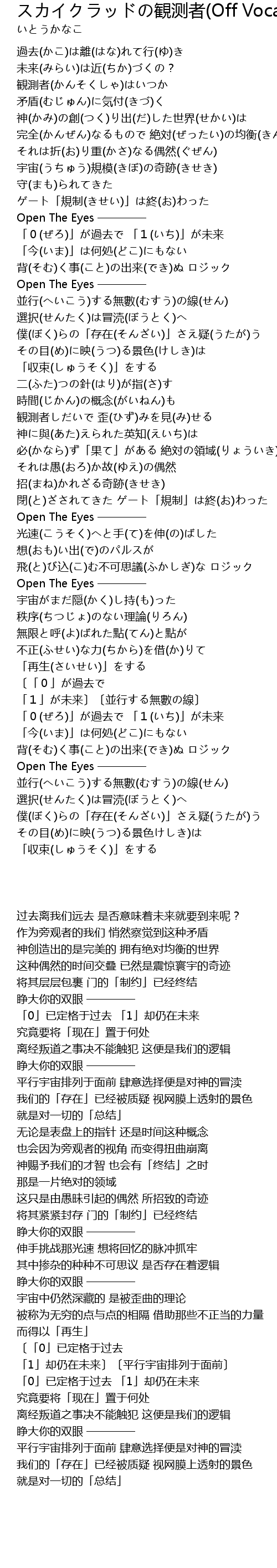 | [00:33.030] | 観測者(かんそくしゃ)はいつか 矛盾(むじゅん)に気付(きづ)く |