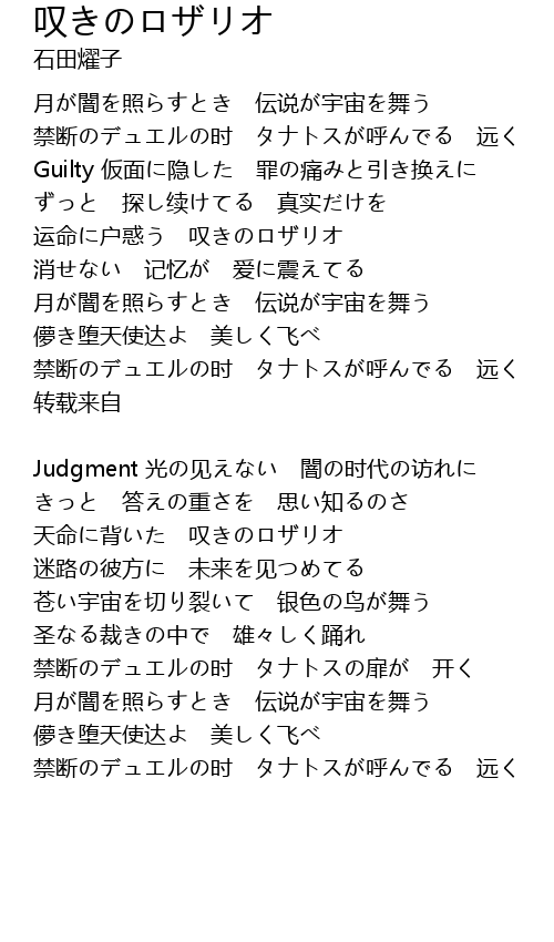 | Song | 叹きのロザリオ |