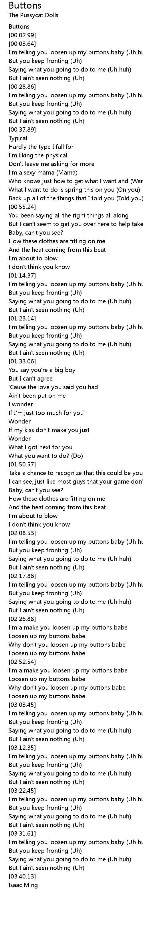 I'm telling you loosen up my buttons baby (Uh huh) |