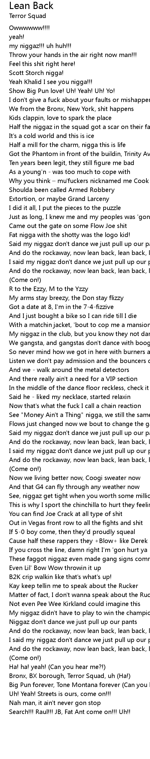 | [01:13.60] | And do the rockaway, now lean back, lean back, lean back, lean back |