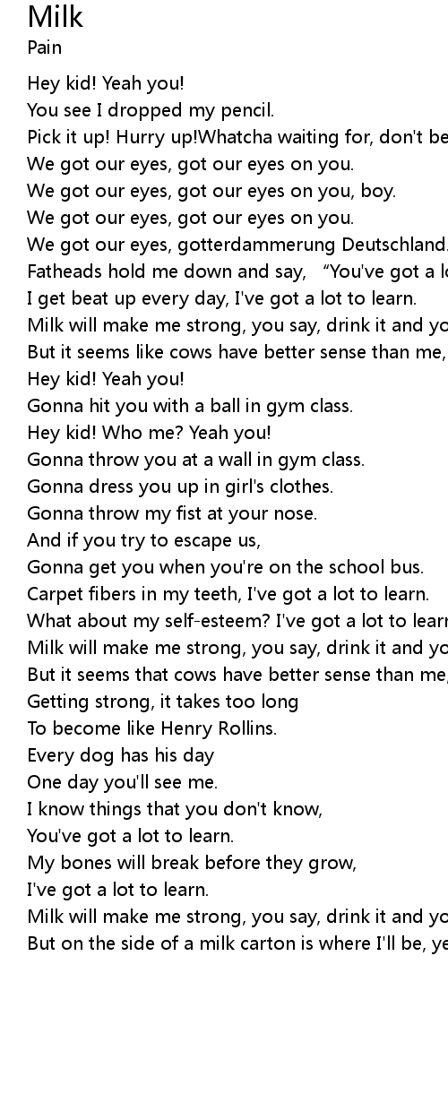| Milk will make me strong, you say, drink it and you will see, | |
