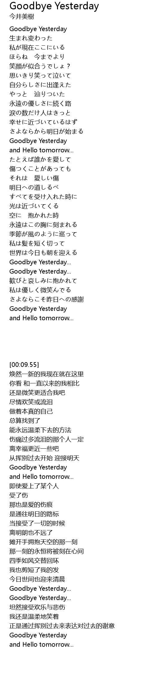 | [00:08.15] | Goodbye Yesterday |