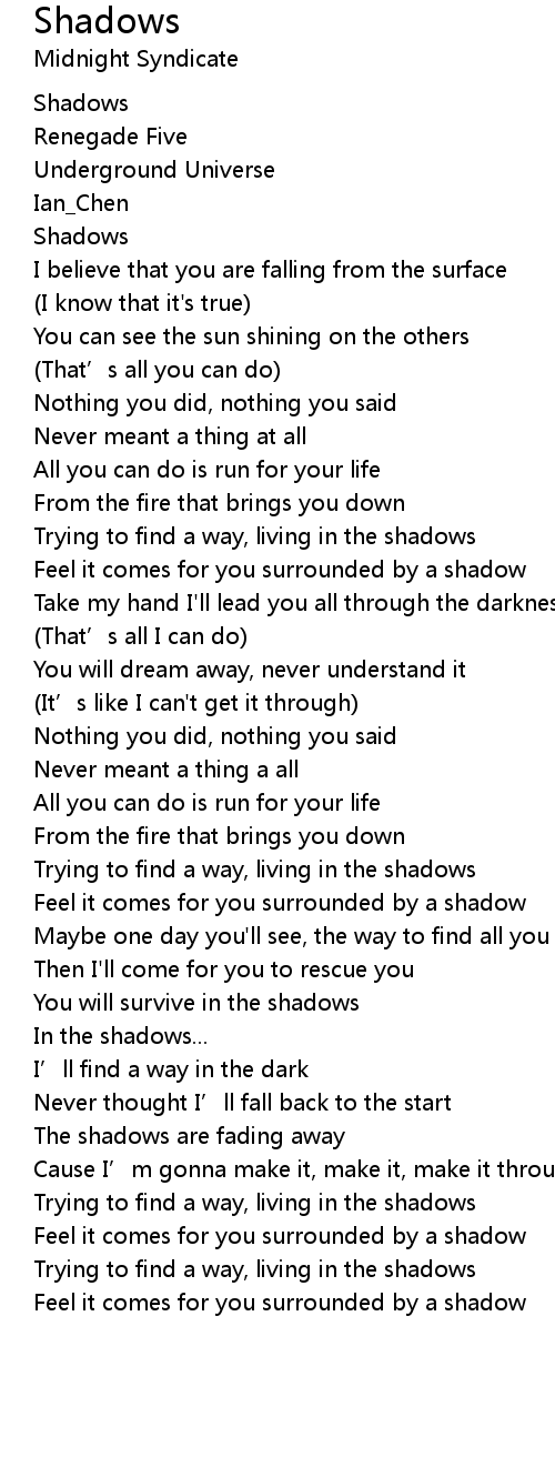 | [00:23.55] | Shadows |