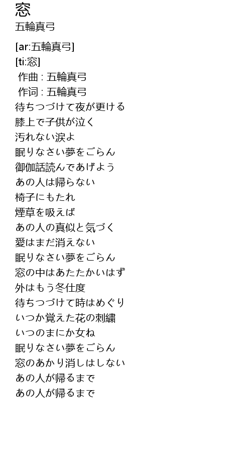| [00:00.00] | 作曲 : 五輪真弓 |