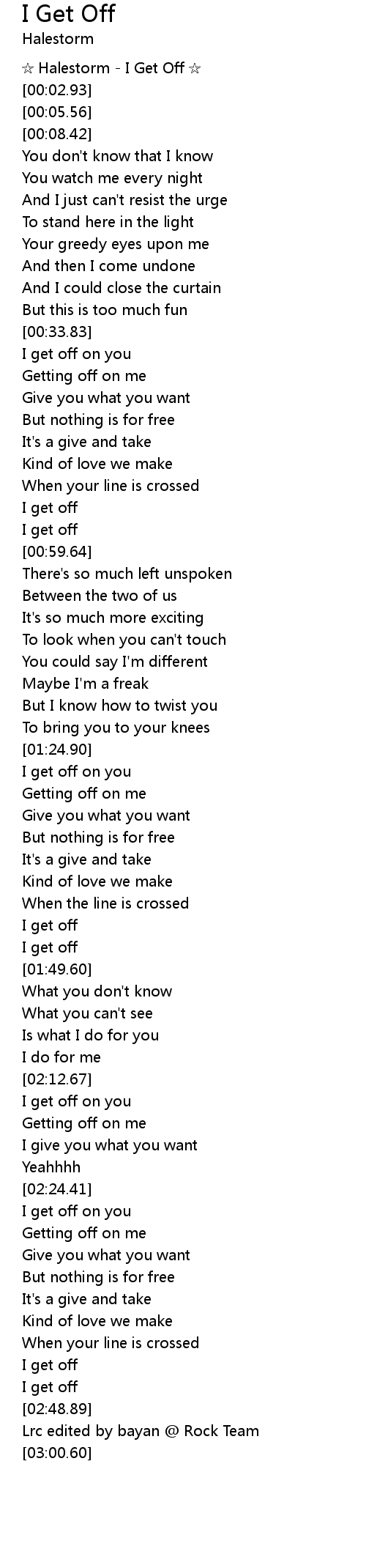 | [00:01.16] | Halestorm I Get Off |
