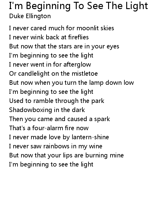 I'm beginning to see the light |