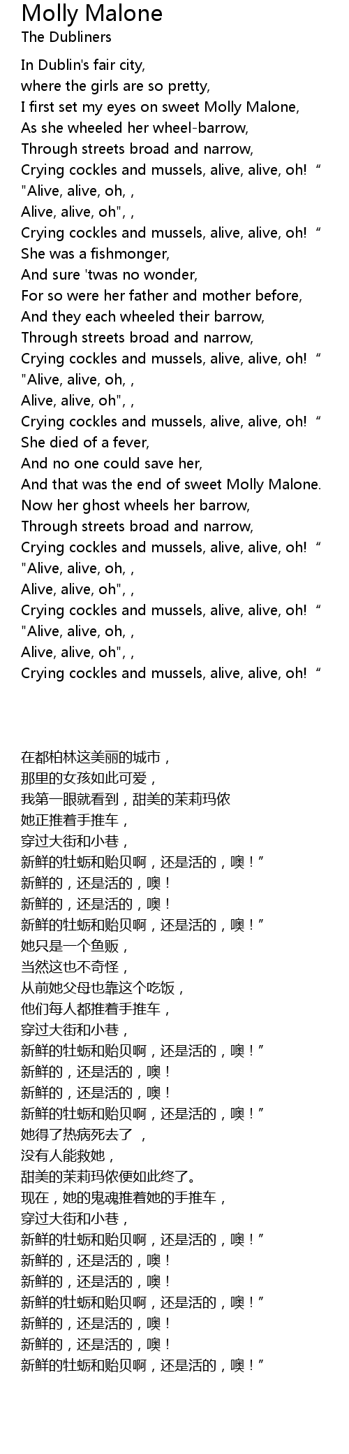 | [02:10.51] | Crying cockles and mussels, alive, alive, oh!" |