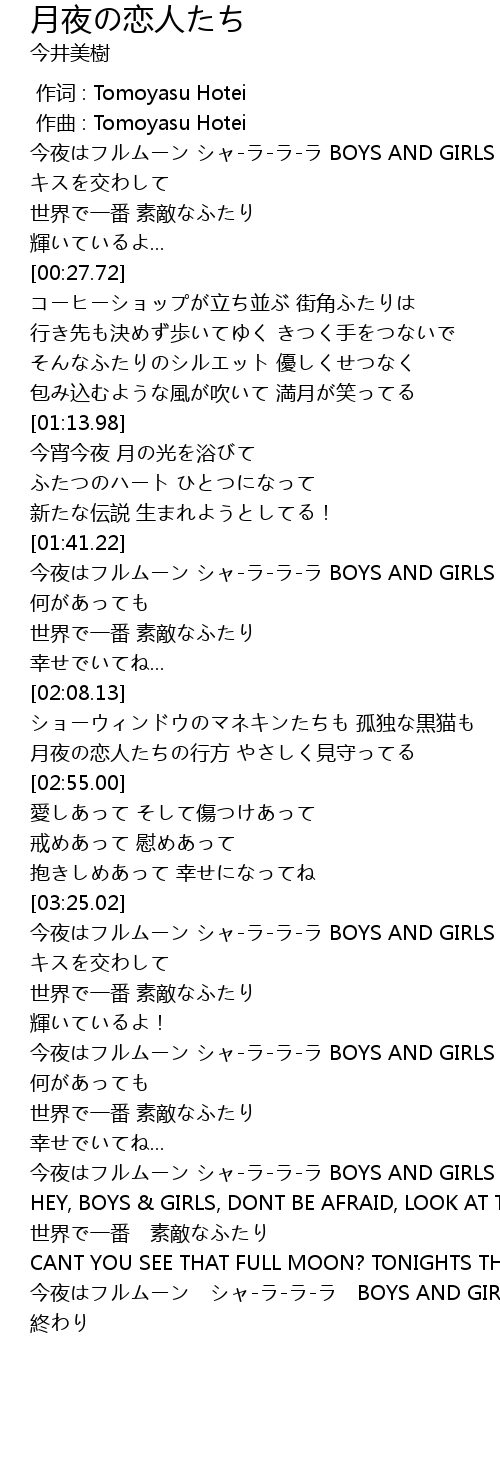| [02:43.00] | 月夜の恋人たちの行方 やさしく見守ってる |