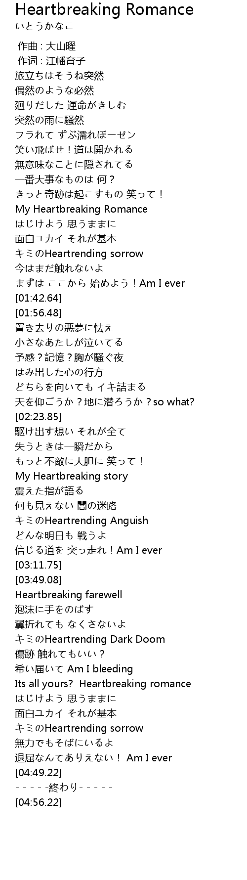 | [04:17.49] | Its all yours? Heartbreaking romance |
