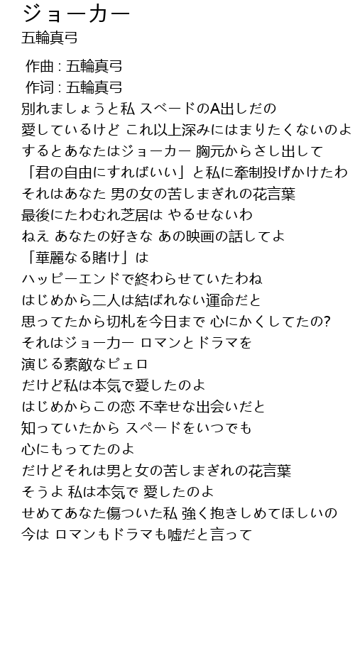 | [00:14.55] | 別れましょうと私 スべードのA出しだの |