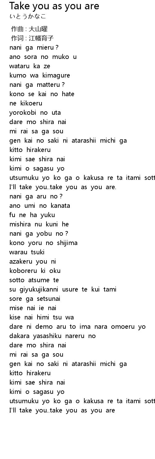 | Song | Take you as you are |